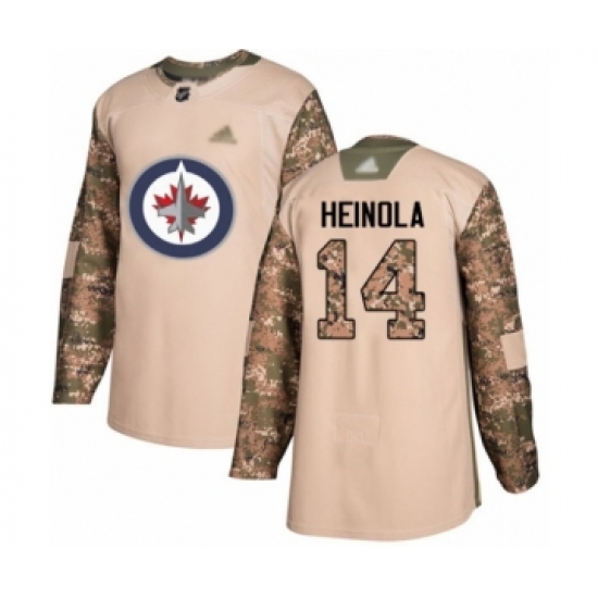 >Men's Winnipeg Jets #14 Ville Heinola Authentic Camo Veterans Day Practice Hockey Jersey