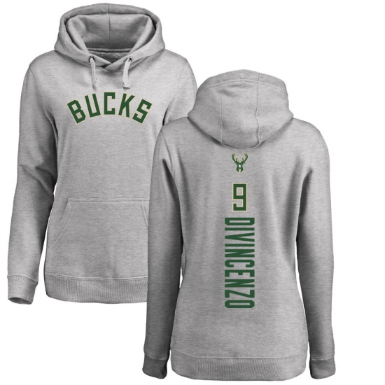 >NBA Women's Nike Milwaukee Bucks #9 Donte DiVincenzo Ash Backer Pullover Hoodie