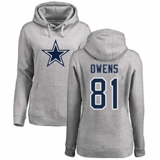>NFL Women's Nike Dallas Cowboys #81 Terrell Owens Ash Name & Number Logo Pullover Hoodie