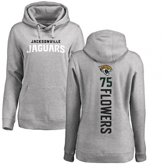 >NFL Women's Nike Jacksonville Jaguars #75 Ereck Flowers Ash Backer Pullover Hoodie