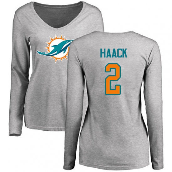 >NFL Women's Nike Miami Dolphins #2 Matt Haack Ash Name & Number Logo Long Sleeve T-Shir
