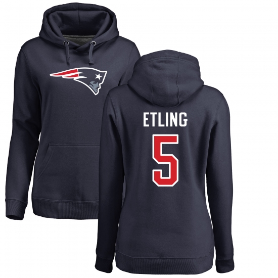>NFL Women's Nike New England Patriots #5 Danny Etling Navy Blue Name & Number Logo Pullover Hoodie