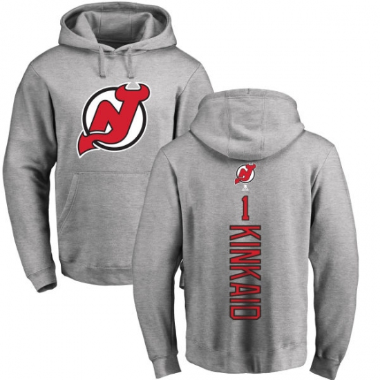 NHL Adidas New Jersey Devils #1 Keith Kinkaid Ash Backer Pullover Hoodie