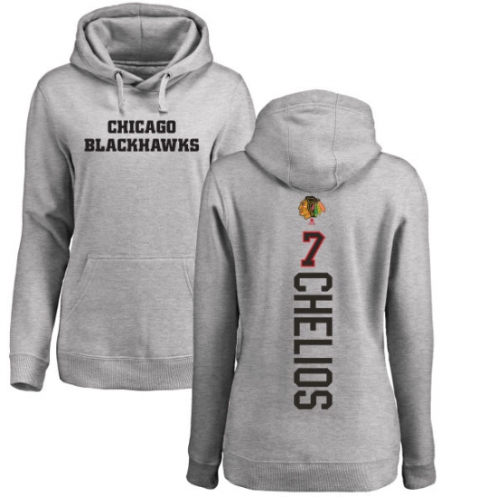 Home>NHL>Chicago Blackhawks>Chris Chelios>NHL Women's Adidas Chicago Blackhawks #7 Chris Chelios Ash Backer Pullover Hoodie
