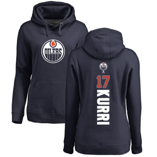 Home>NHL>Edmonton Oilers>Jari Kurri>NHL Women's Adidas Edmonton Oilers #17 Jari Kurri Navy Blue Backer Pullover Hoodie