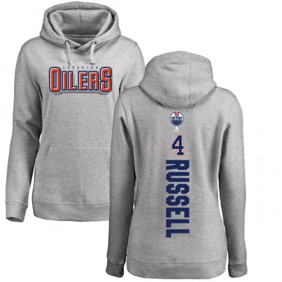 NHL Women's Adidas Edmonton Oilers #4 Kris Russell Ash Backer Pullover Hoodie