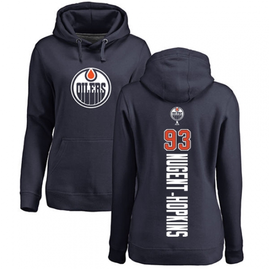 Home>NHL>Edmonton Oilers>Ryan Nugent-Hopkins>NHL Women's Adidas Edmonton Oilers #93 Ryan Nugent-Hopkins Navy Blue Backer Pullover Hoodie
