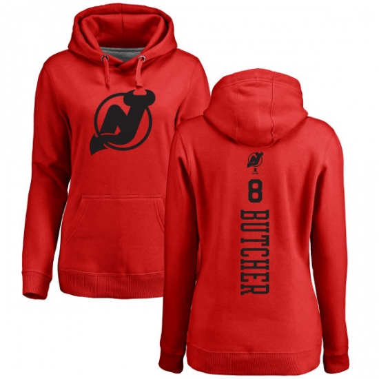 Home>NHL>New Devils Jersey>Will Butcher>NHL Women's Adidas New Jersey Devils #8 Will Butcher Red One Color Backer Pullover Hoodie