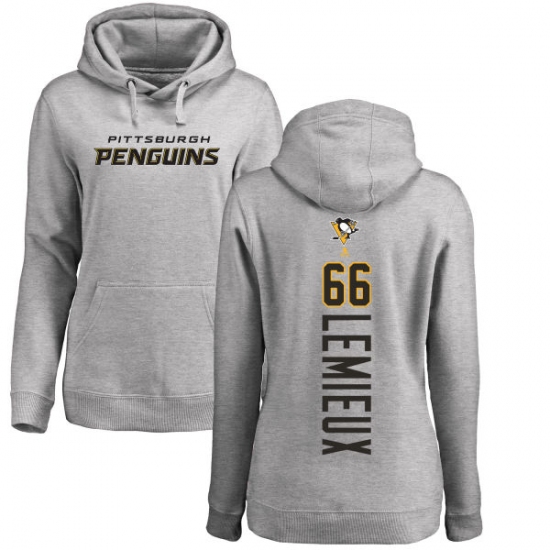 NHL Women's Adidas Pittsburgh Penguins #66 Mario Lemieux Ash Backer Pullover Hoodie