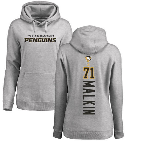 NHL Women's Adidas Pittsburgh Penguins #71 Evgeni Malkin Ash Backer Pullover Hoodie