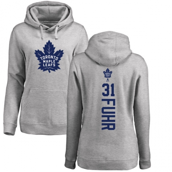 NHL Women's Adidas Toronto Maple Leafs #31 Grant Fuhr Ash Backer Pullover Hoodie