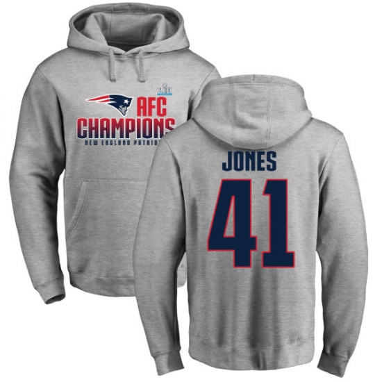 Nike New England Patriots #41 Cyrus Jones Heather Gray 2017 AFC Champions Pullover Hoodie