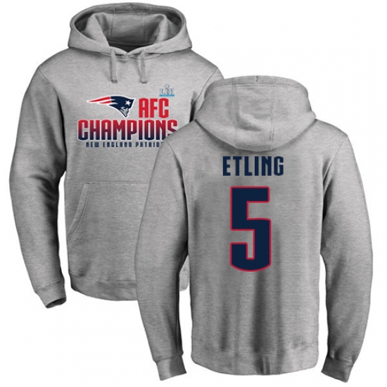 Nike New England Patriots #5 Danny Etling Heather Gray 2017 AFC Champions Pullover Hoodie