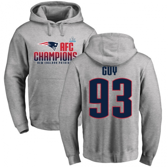 >Nike New England Patriots #93 Lawrence Guy Heather Gray 2017 AFC Champions Pullover Hoodie
