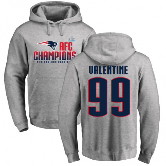 >Nike New England Patriots #99 Vincent Valentine Heather Gray 2017 AFC Champions Pullover Hoodie