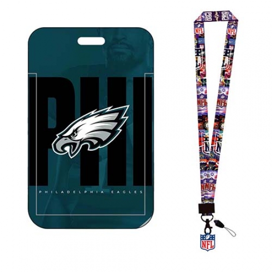 >Philadelphia eagles ID Stickers Badge Holder with Lanyard, Hard Plastic Key Card Work Badge Sleeve for Office, School, Factory, ID Credit Cards, Proximity