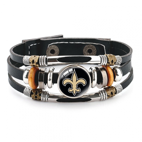 Saints- NFL Pro football team jewel cowhide bracelet leather hand jewelry