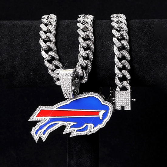 Silver 20inch The Buffalo Bills Team head NFL pendant Europe and the United States new fashion personality football necklace men and women street hip-hop