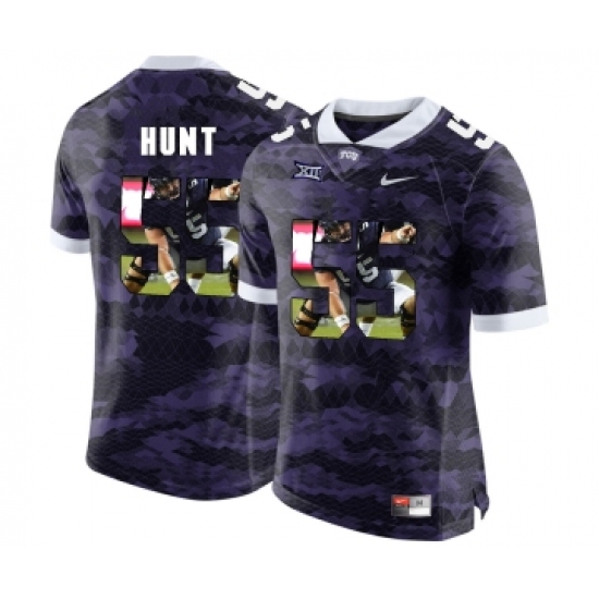 >TCU Horned Frogs 55 Joey Hunt Purple With Portrait Print College Football Limited Jersey
