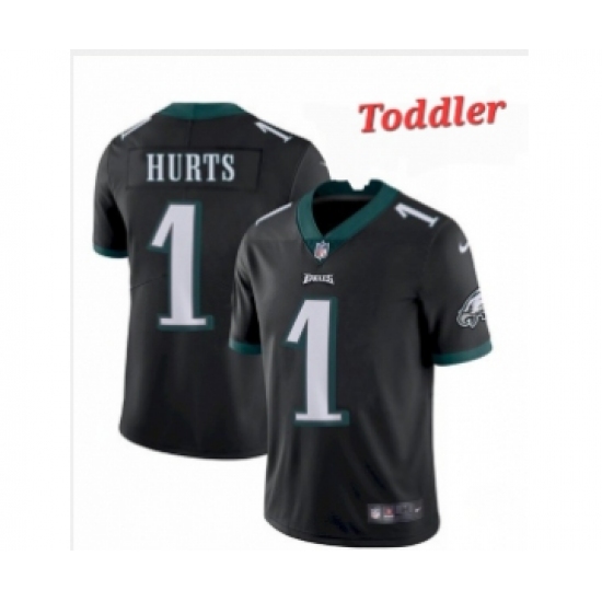 >Toddler Philadelphia Eagles #1 Jalen Hurts Black Vapor Untouchable Limited Stitched Jersey