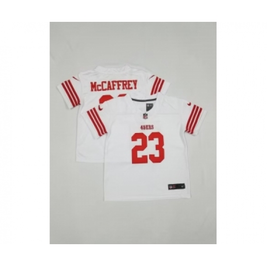 >Toddlers San Francisco 49ers #23 Christian McCaffrey 2022 White Vapor Untouchable Stitched Limited Jersey