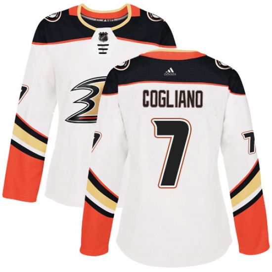 >Women's Adidas Anaheim Ducks #7 Andrew Cogliano Authentic White Away NHL Jersey
