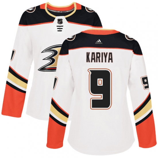 Women's Adidas Anaheim Ducks #9 Paul Kariya Authentic White Away NHL Jersey