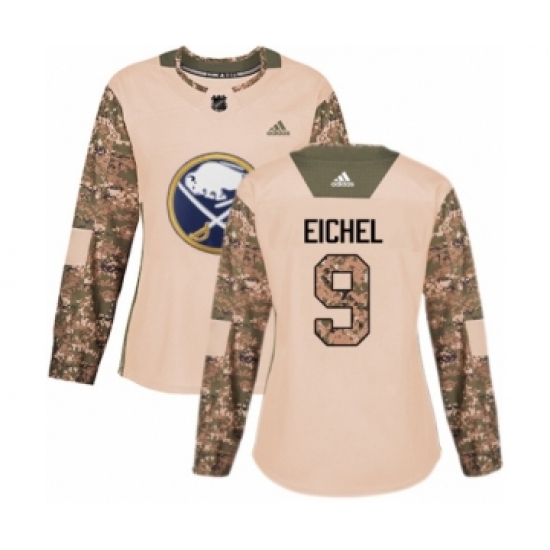 Women's Adidas Buffalo Sabres #9 Jack Eichel Authentic Camo Veterans Day Practice NHL Jersey