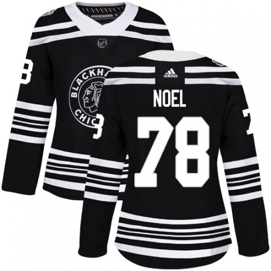>Women's Adidas Chicago Blackhawks #78 Nathan Noel Authentic Black 2019 Winter Classic NHL Jersey