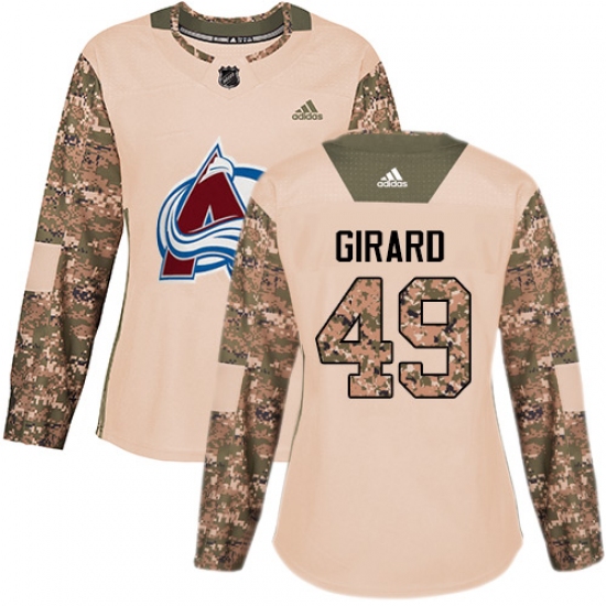 >Women's Adidas Colorado Avalanche #49 Samuel Girard Authentic Camo Veterans Day Practice NHL Jersey