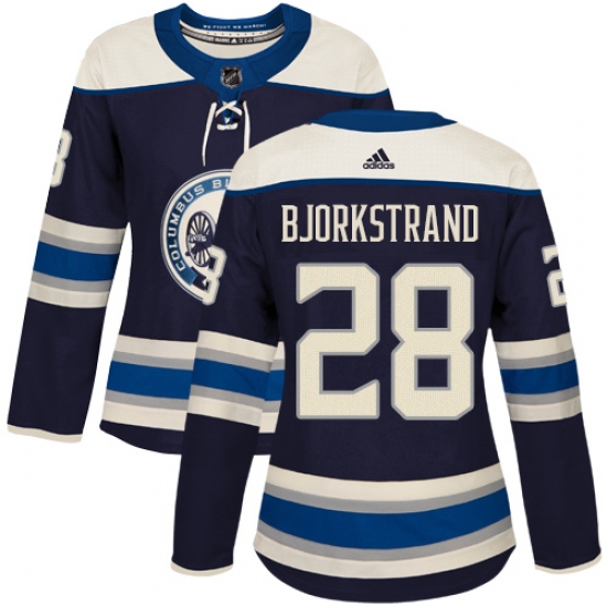 Women's Adidas Columbus Blue Jackets #28 Oliver Bjorkstrand Authentic Navy Blue Alternate NHL Jersey