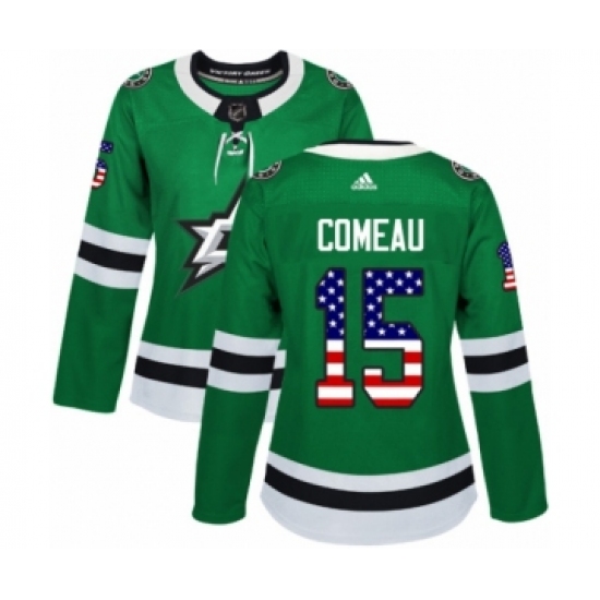 >Women's Adidas Dallas Stars #15 Blake Comeau Authentic Green USA Flag Fashion NHL Jersey