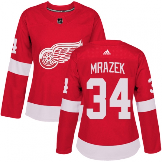 Home>NHL>Detroit Red Wings>Petr Mrazek>Women's Adidas Detroit Red Wings #34 Petr Mrazek Authentic Red Home NHL Jersey