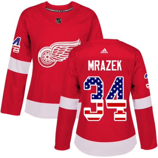 Home>NHL>Detroit Red Wings>Petr Mrazek>Women's Adidas Detroit Red Wings #34 Petr Mrazek Authentic Red USA Flag Fashion NHL Jersey