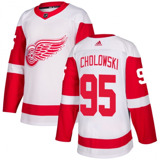 Home>NHL>Detroit Red Wings>Dennis Cholowski>Women's Adidas Detroit Red Wings #95 Dennis Cholowski Authentic White Away NHL Jersey