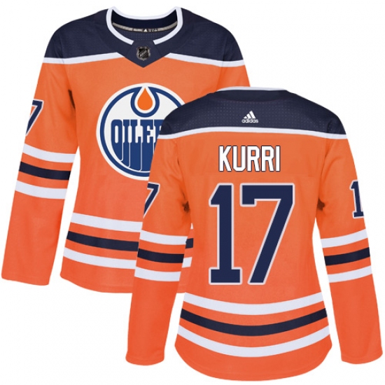 Home>NHL>Edmonton Oilers>Jari Kurri>Women's Adidas Edmonton Oilers #17 Jari Kurri Authentic Orange Home NHL Jersey