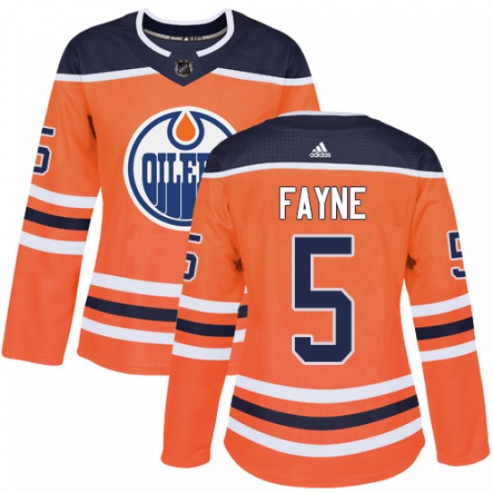 Home>NHL>Edmonton Oilers>Mark Fayne>Women's Adidas Edmonton Oilers #5 Mark Fayne Authentic Orange Home NHL Jersey