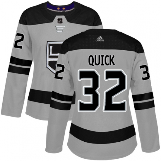 >Women's Adidas Los Angeles Kings #32 Jonathan Quick Authentic Gray Alternate NHL Jersey