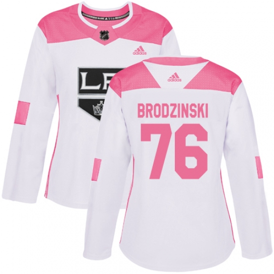 Women's Adidas Los Angeles Kings #76 Jonny Brodzinski Authentic White Pink Fashion NHL Jersey