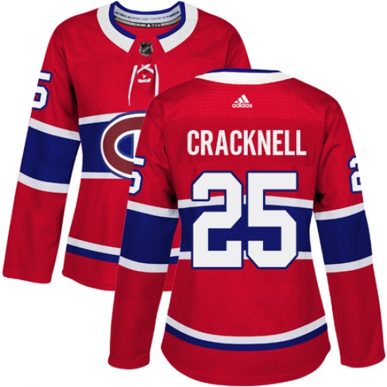 >Women's Adidas Montreal Canadiens #25 Adam Cracknell Authentic Red Home NHL Jersey