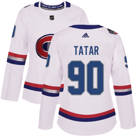 >Women's Adidas Montreal Canadiens #90 Tomas Tatar Authentic White 2017 100 Classic NHL Jersey