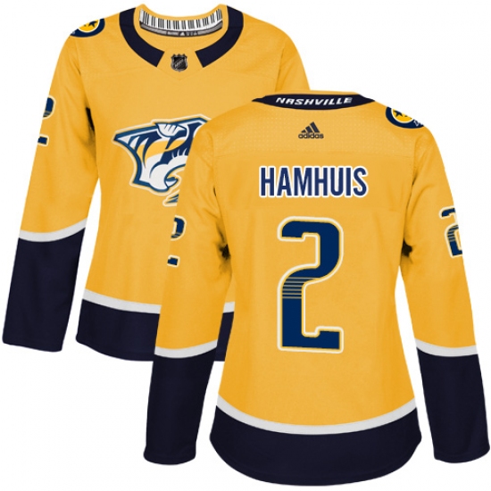 >Women's Adidas Nashville Predators #2 Dan Hamhuis Authentic Gold Home NHL Jersey