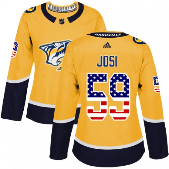 Home>NHL>Nashville Predators>Roman Josi>Women's Adidas Nashville Predators #59 Roman Josi Authentic Gold USA Flag Fashion NHL Jersey