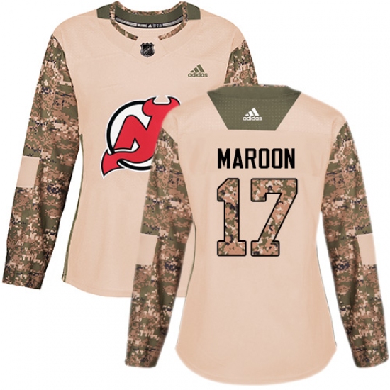 Women's Adidas New Jersey Devils #17 Patrick Maroon Authentic Camo Veterans Day Practice NHL Jersey