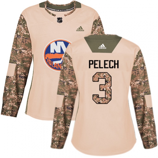 Women's Adidas New York Islanders #3 Adam Pelech Authentic Camo Veterans Day Practice NHL Jersey