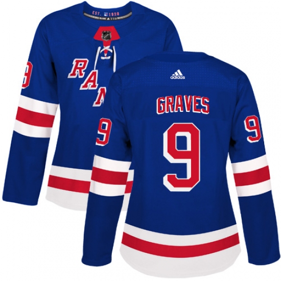 Women's Adidas New York Rangers #9 Adam Graves Authentic Royal Blue Home NHL Jersey