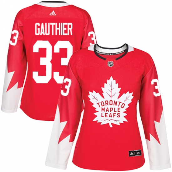 Home>NHL>Toronto Maple Leafs>Frederik Gauthier>Women's Adidas Toronto Maple Leafs #33 Frederik Gauthier Authentic Red Alternate NHL Jersey