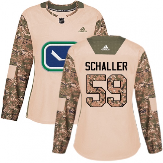 >Women's Adidas Vancouver Canucks #59 Tim Schaller Authentic Camo Veterans Day Practice NHL Jersey