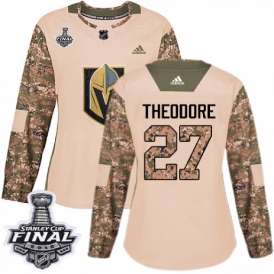 Women's Adidas Vegas Golden Knights #27 Shea Theodore Authentic Camo Veterans Day Practice 2018 Stanley Cup Final NHL Jersey
