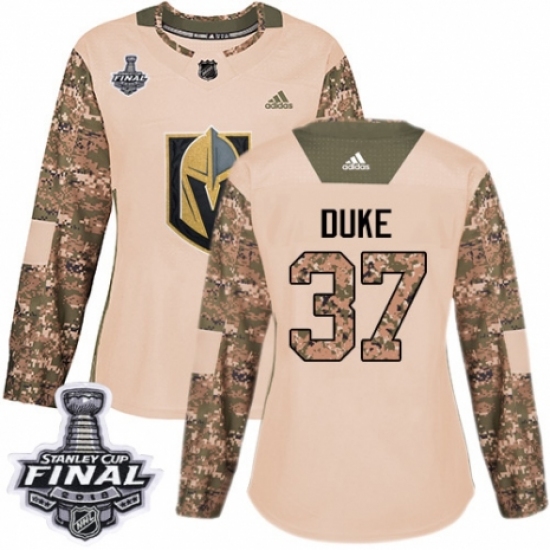 >Women's Adidas Vegas Golden Knights #37 Reid Duke Authentic Camo Veterans Day Practice 2018 Stanley Cup Final NHL Jersey